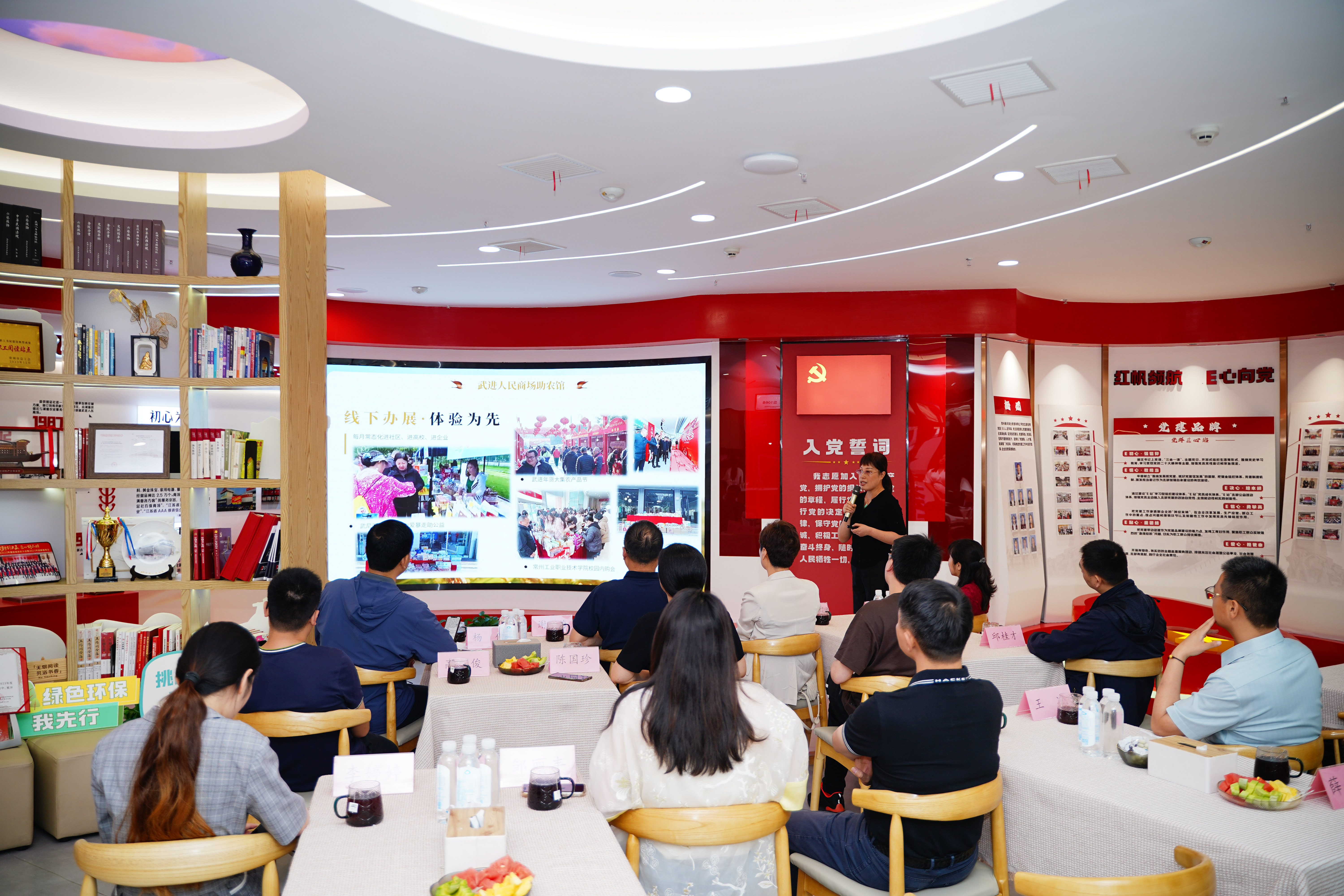 钱亚娟表示,武进人民商场通过易天团队的改造完成了旧貌换新颜的蝶变,亮点颇多值得学习。本次在商场党建文化馆开展支部会议也是创新支部活动形式的一次有益尝试。