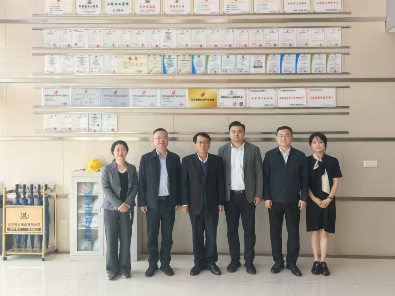 在捷达油品有限公司,新北四支部党员陶真向调研组介绍了企业在油品领域的创新发展成果。该公司先后通过ISO9001、ISO14001等体系认证,荣获江苏省高新技术企业、瞪羚企业、专精特新企业、常州市企业技术中心等多项荣誉,并实现三星、四星上云,展现出强劲的科技实力。