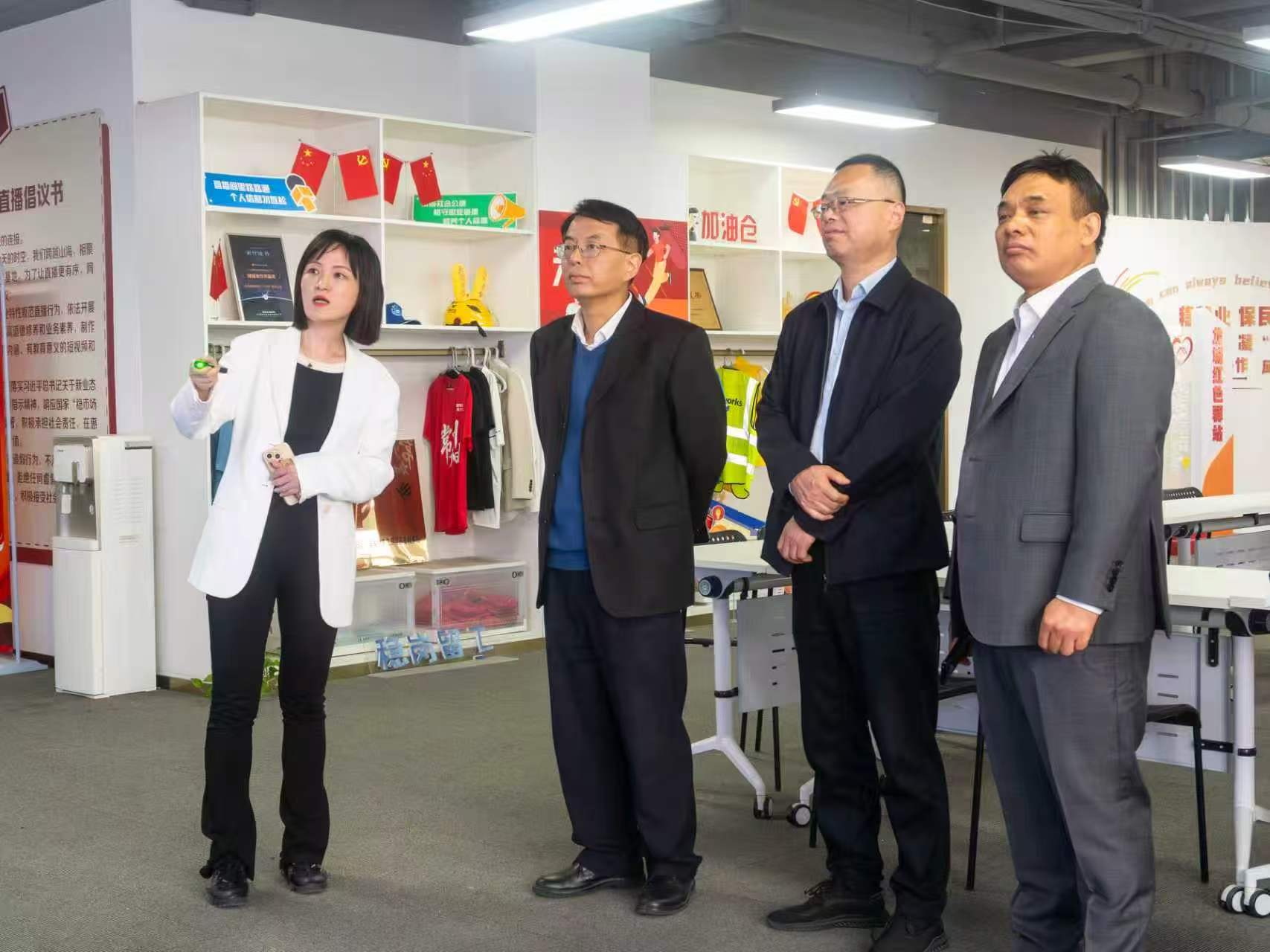 在常州二更网络科技有限公司,调研组重点了解了企业在数字内容创作、新媒体运营及“抖音+政务供需”服务就业等方面的创新实践。该企业由钟楼一支部党员刘霞负责运营,企业开创的抖音平台政务求职模式曾获央视、人民日报等媒体报道。