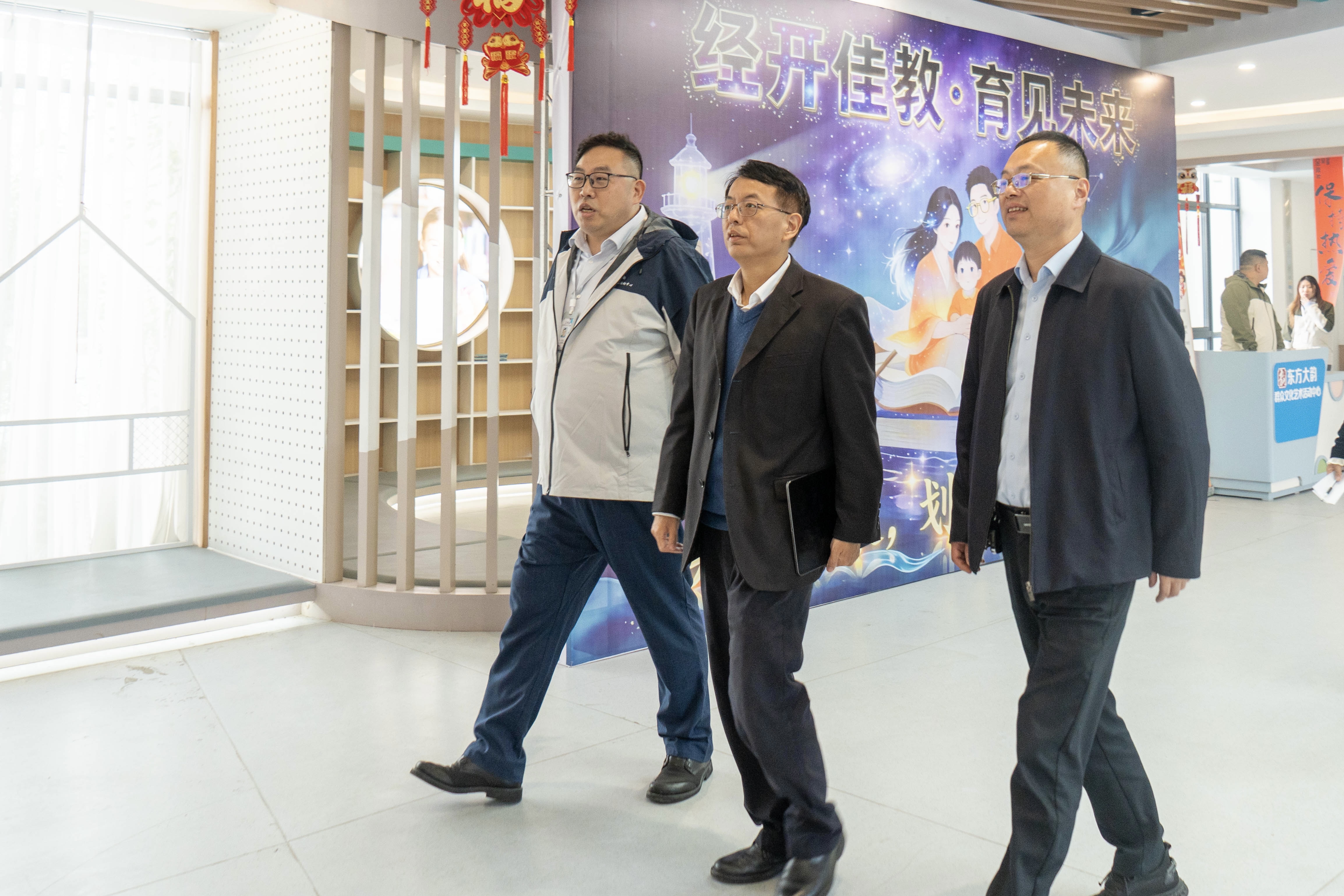 随后,调研组来到东方大韵群众文化艺术活动中心。该中心深耕社区文化教育,面向青少年儿童、中老年群体等全年龄段人群提供文化艺术服务。钟楼五支部党员卞文杰向调研组介绍了中心在群众文化推广、艺术普及等方面取得的成效。